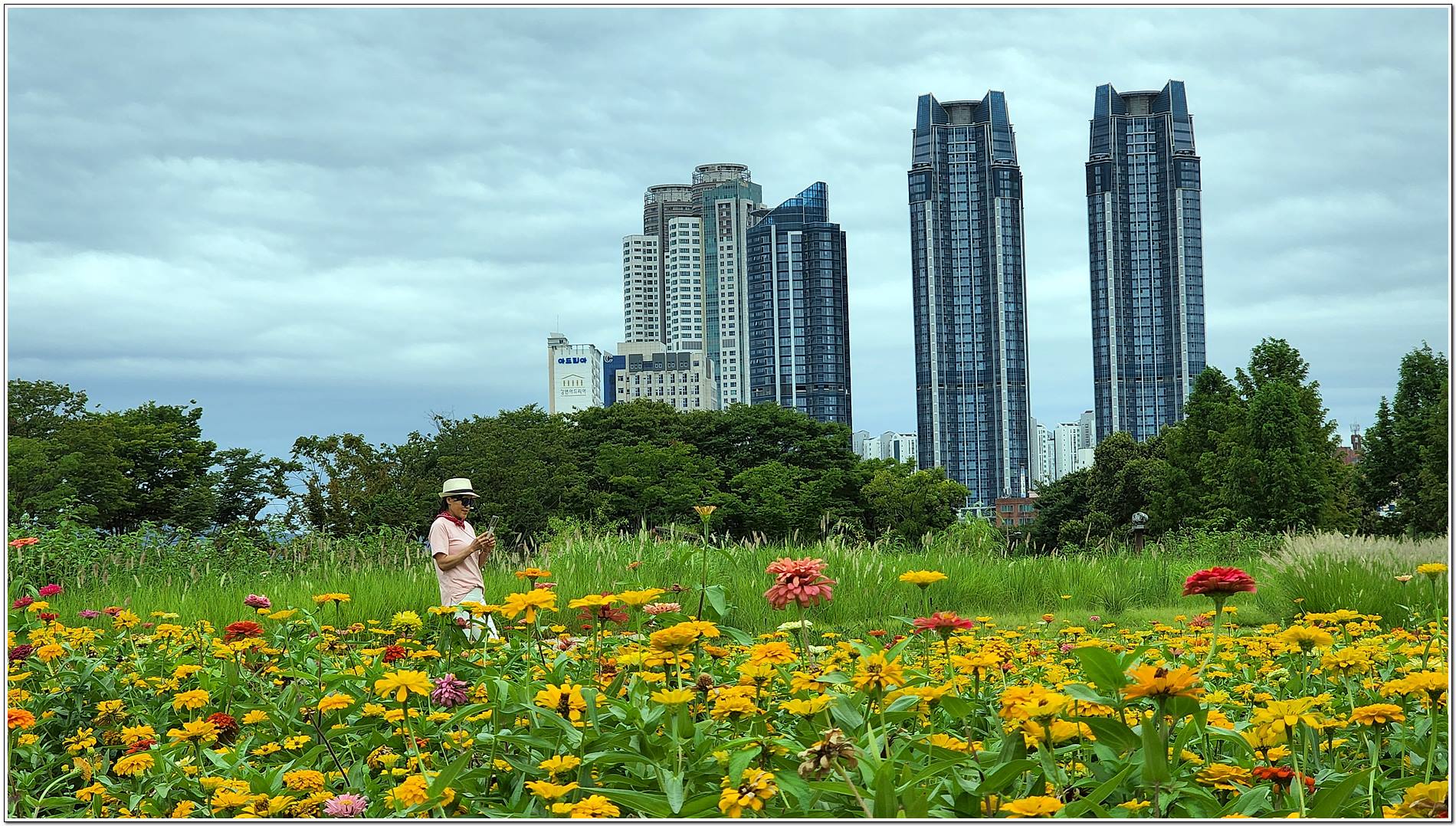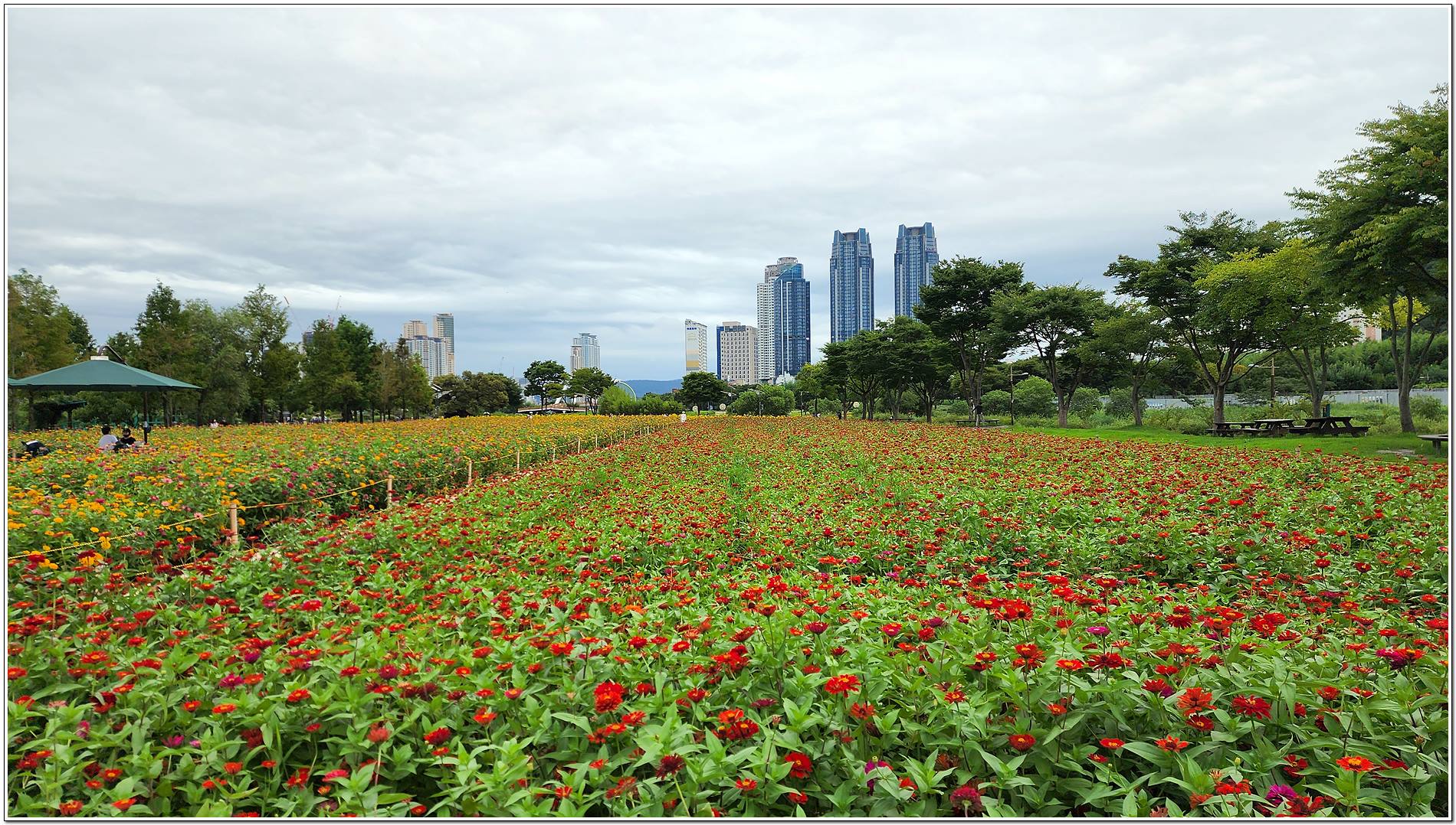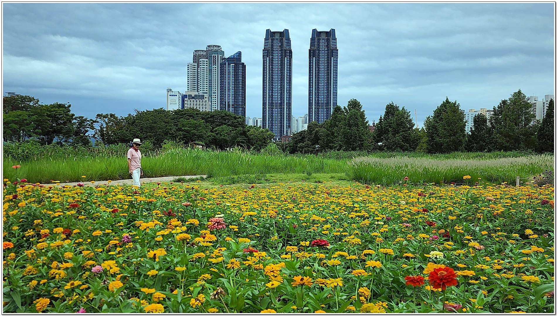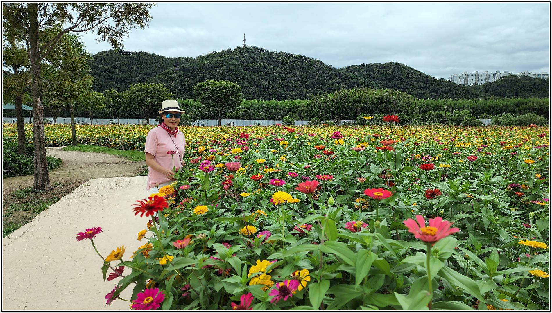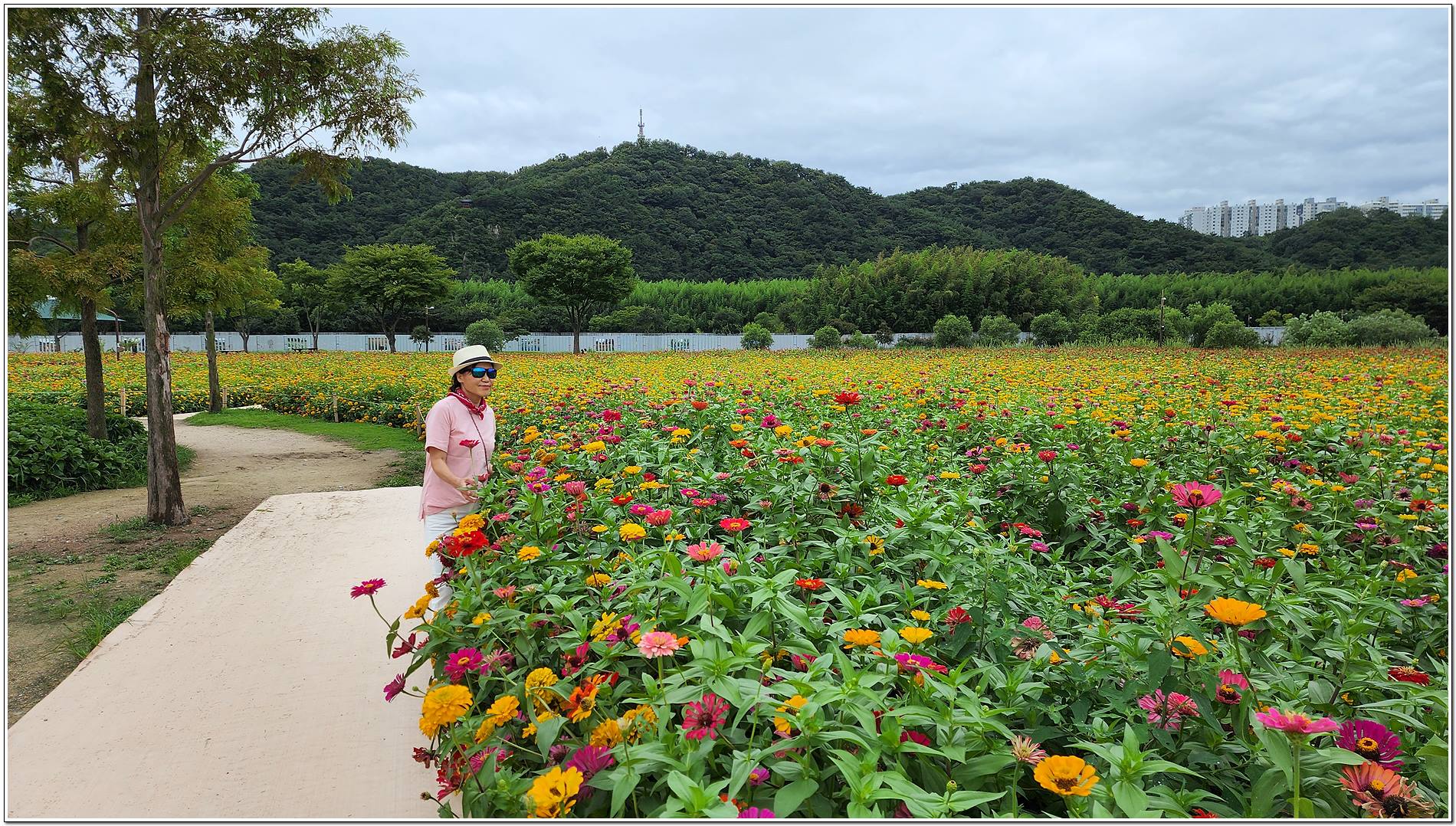 공원 가득 만개한 백일홍, 강변을 따라 이어지는 푸르른 대나무숲길을 따라 걸으면 날씨는 흐리지만 기분은 맑음이다.