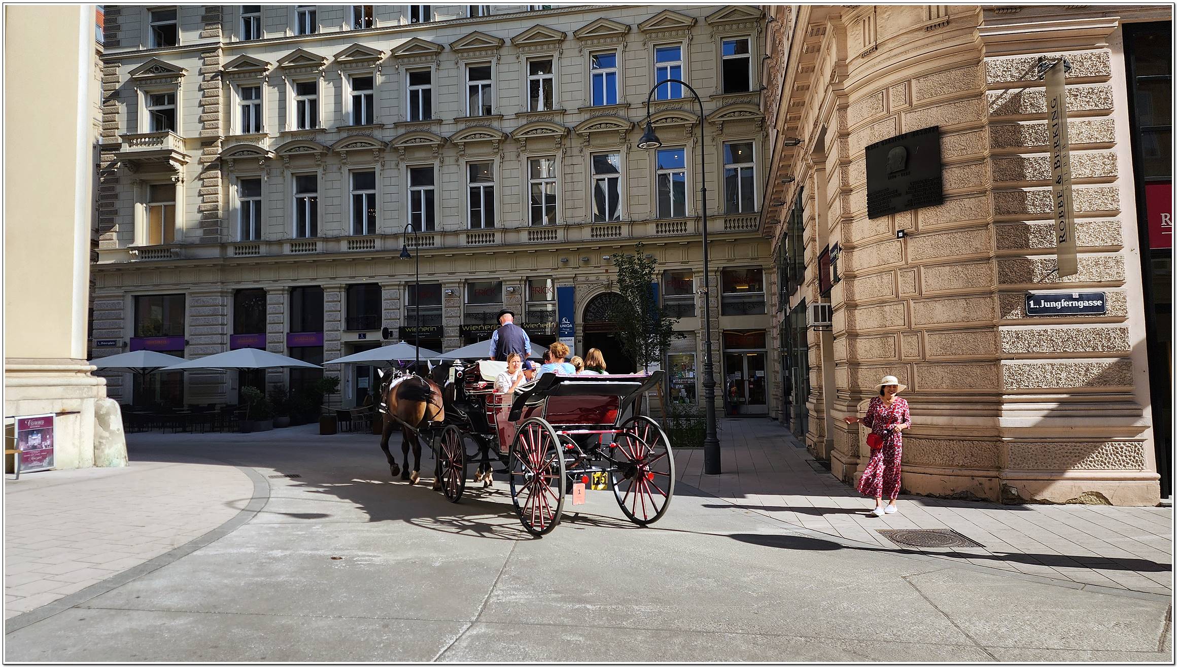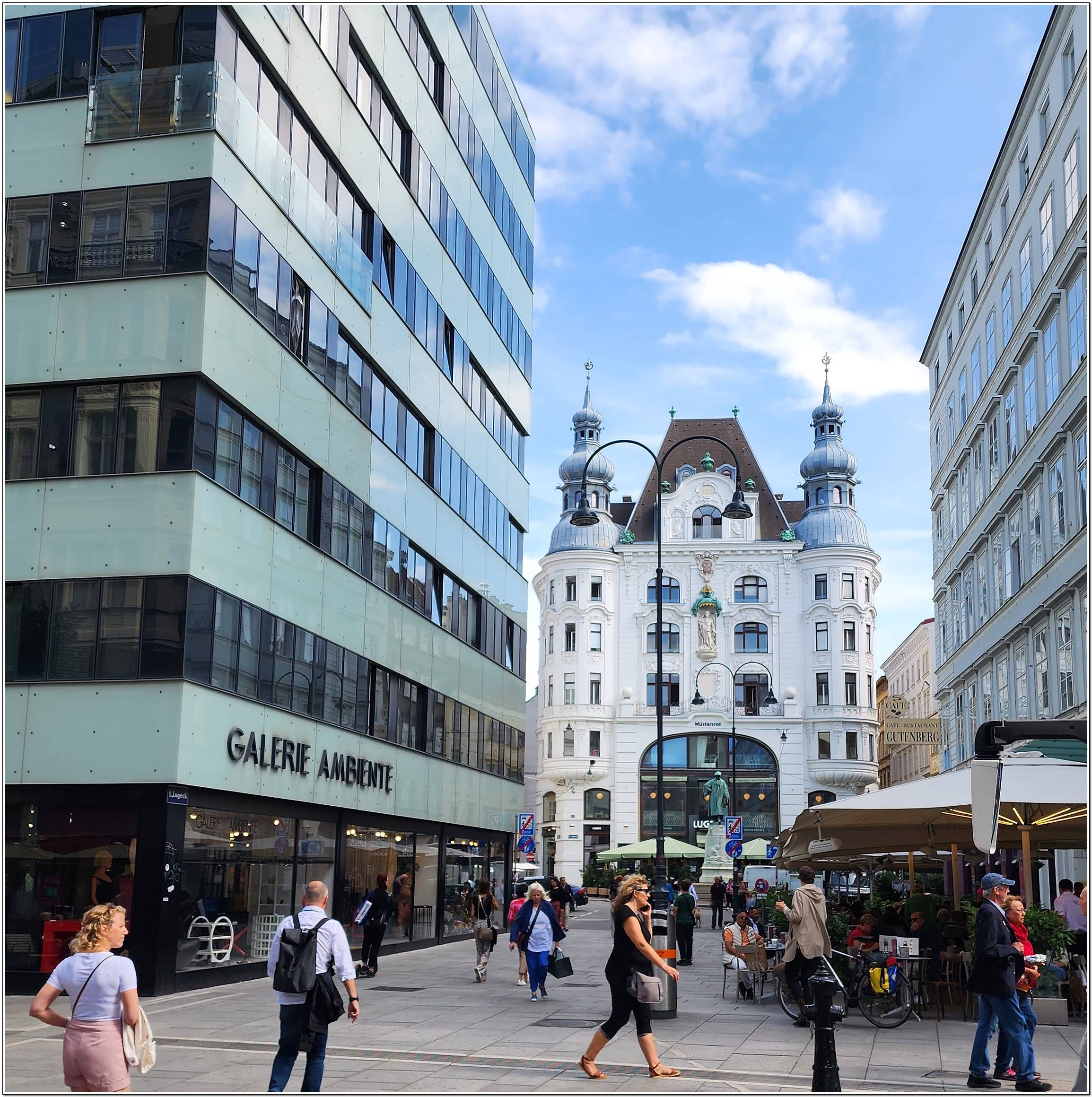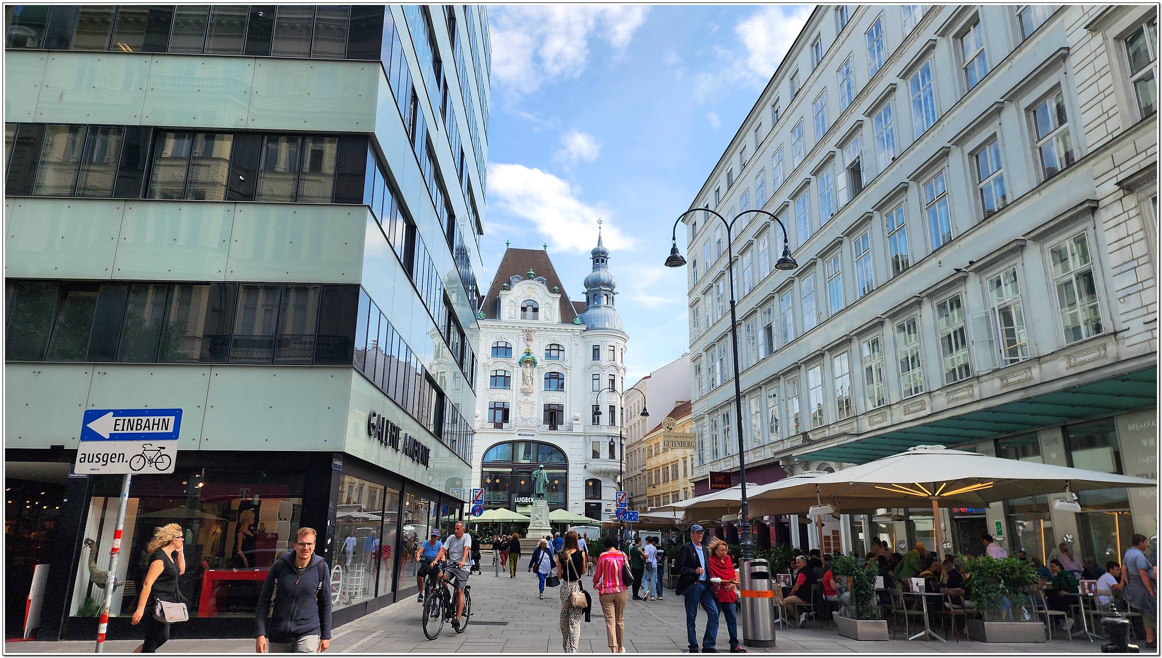 최대의 번화가 게른트너 거리, 유럽3대 오페라극장 중 하나 국립 오페라극장, 모차르트의 결혼식과 장례식이 거행 된 슈테판 대성당, 18세기 바로크 양식의 성 페터 성당 등이 있다.