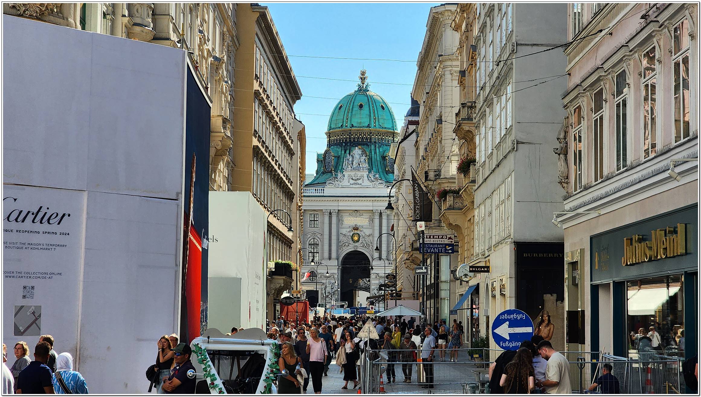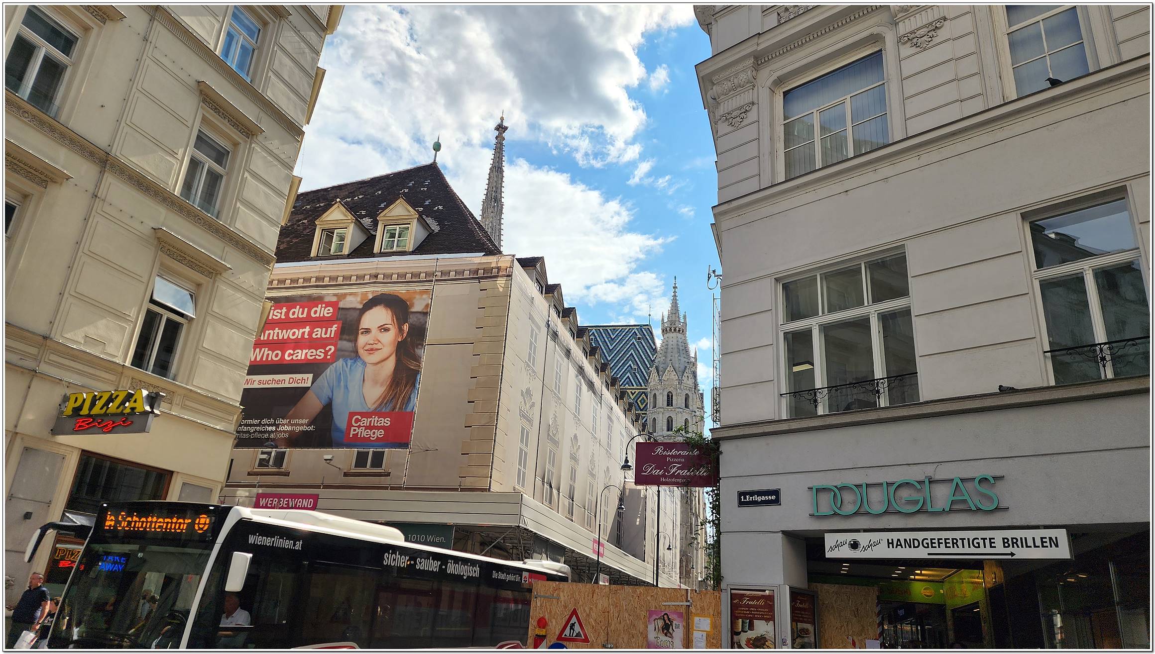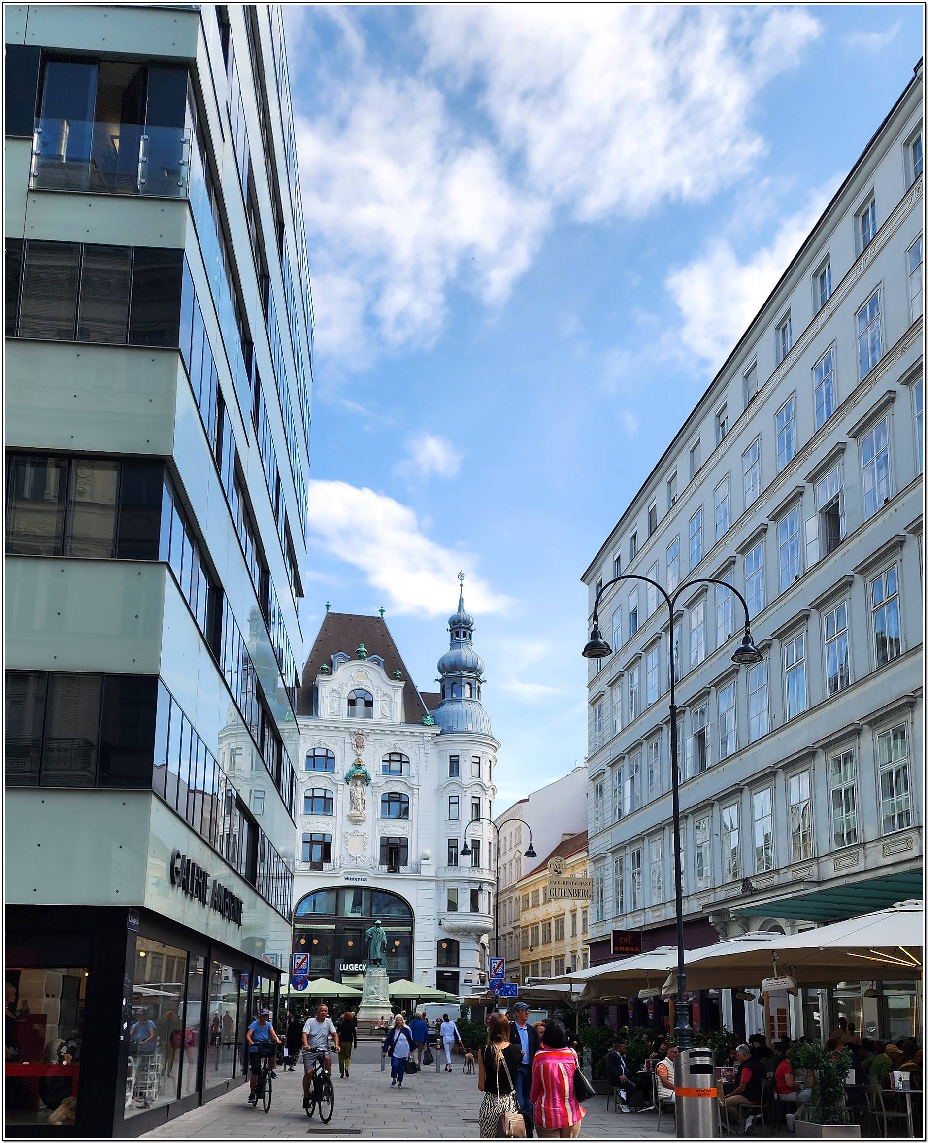 최대의 번화가 게른트너 거리, 유럽3대 오페라극장 중 하나 국립 오페라극장, 모차르트의 결혼식과 장례식이 거행 된 슈테판 대성당, 18세기 바로크 양식의 성 페터 성당 등이 있다.