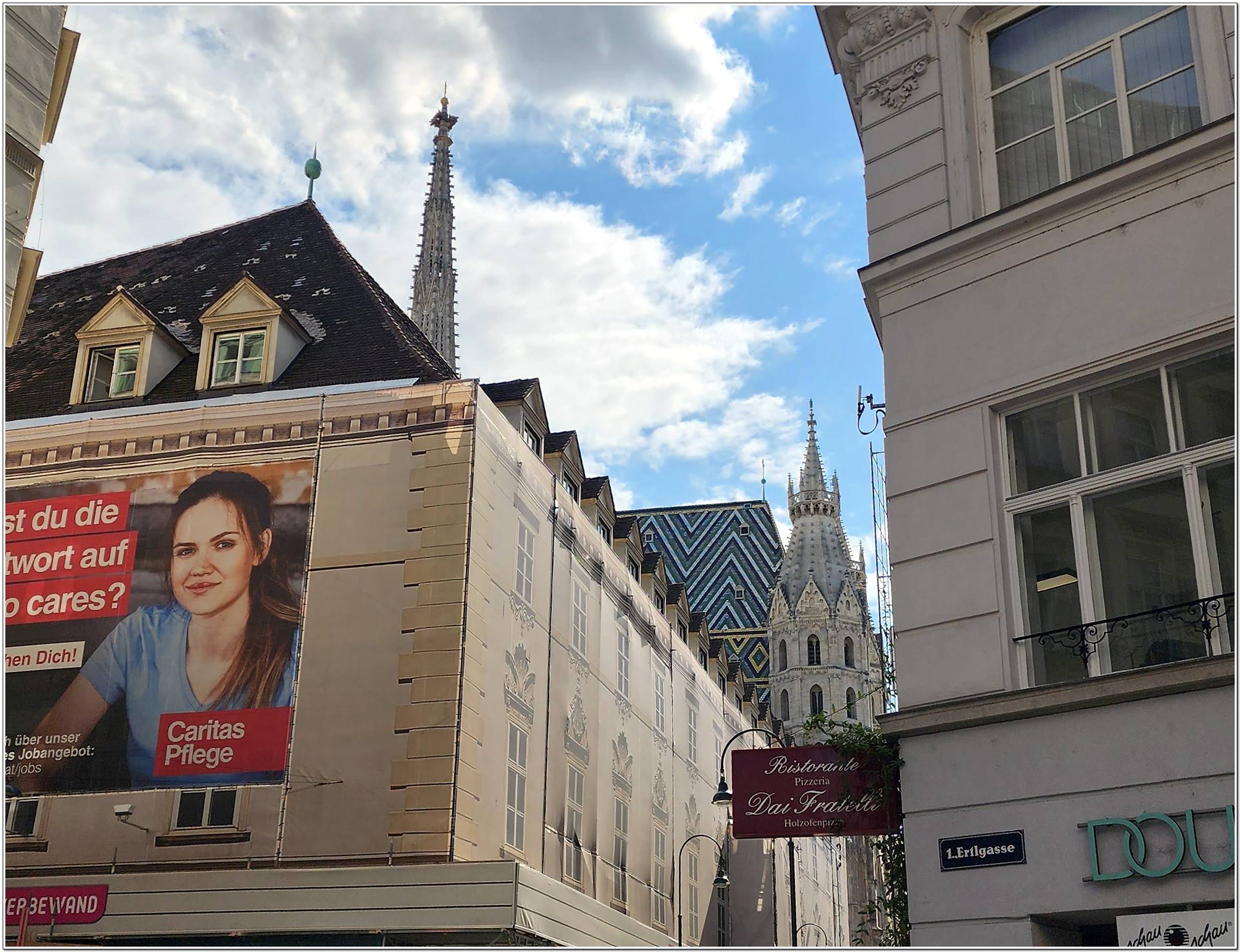 옛 시가지의 중심에 위치한 슈테판 대성당은 오스트리아 최대의 고딕 성당으로 비엔나의 상징적인 건물이다. '슈테플'이라는 애칭으로 불리는 남탑은 137m로 성당의 탑으로는 세계에서 세번째로 높다.