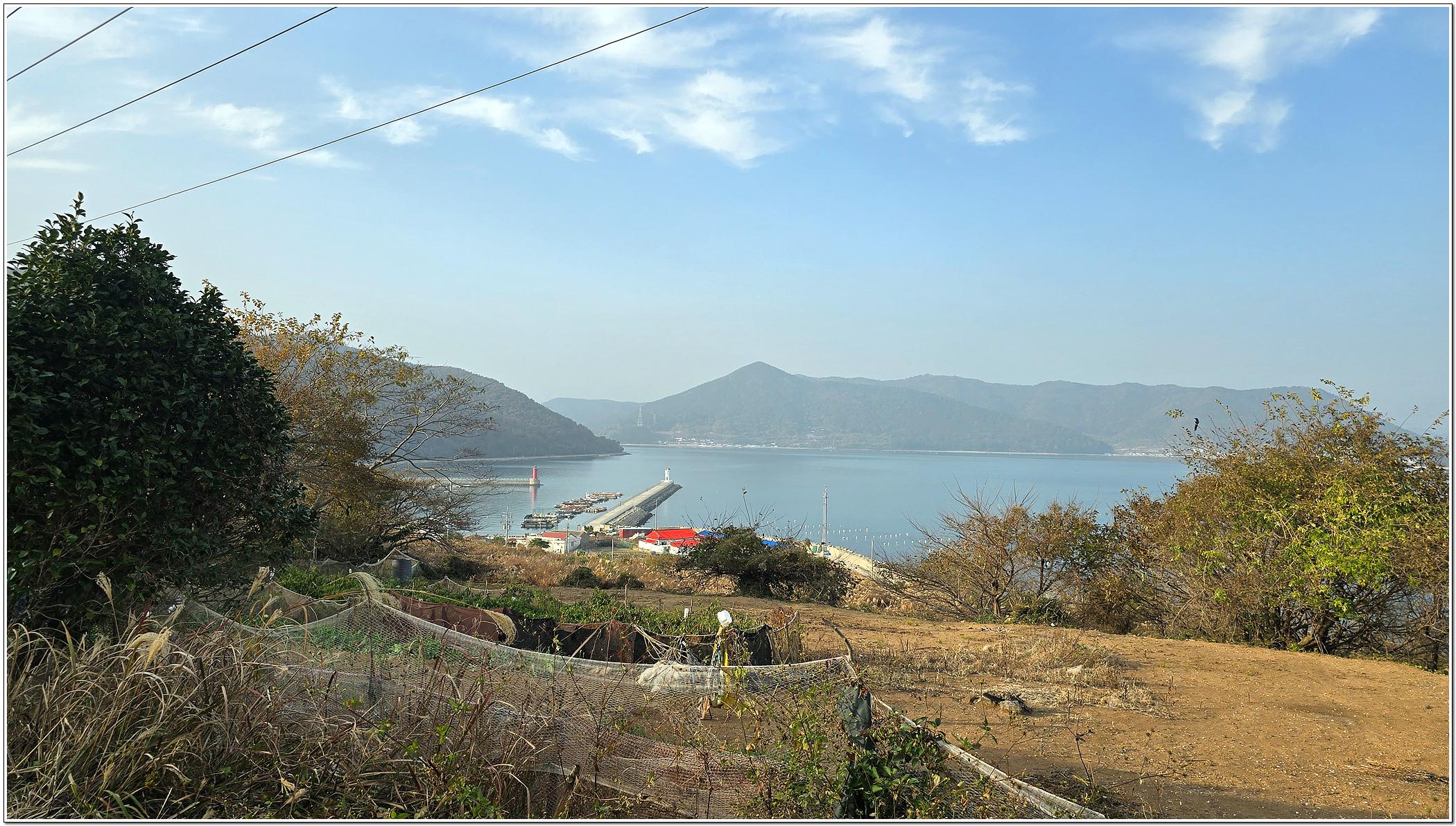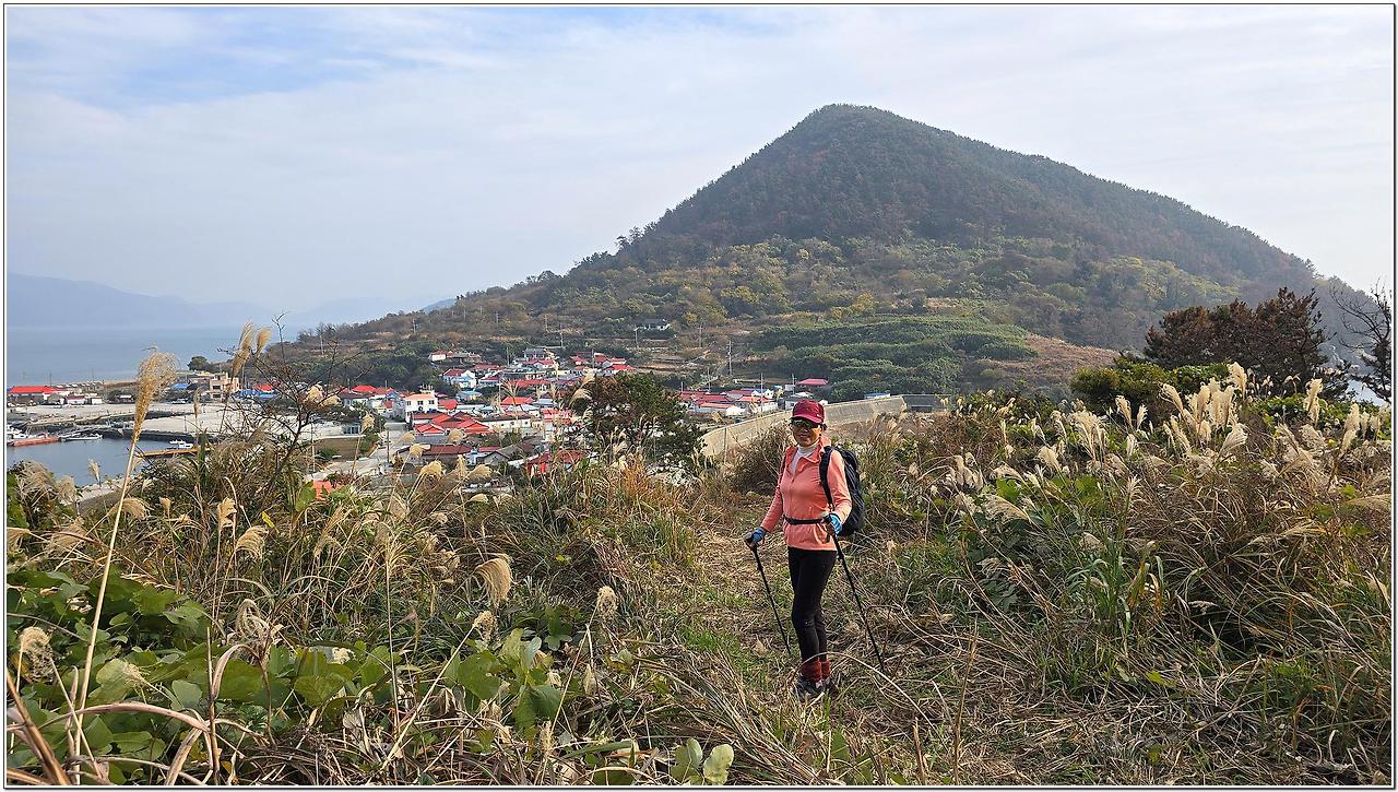 맑고 포근한 날씨에 용초항에서 수동산 까지는 좋았지만 호두마을로 내려서는 길과 호두산을 오르내리는 산길은 잡목과 가시덤불이 우거져 힘든 산행길이었다.