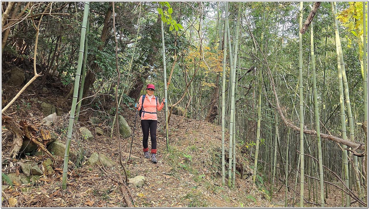 가시덤불이 가득하여 힘겹게 올라 등산로에 이른다.(5분 아끼려다가 10분 걸리는 고생...)