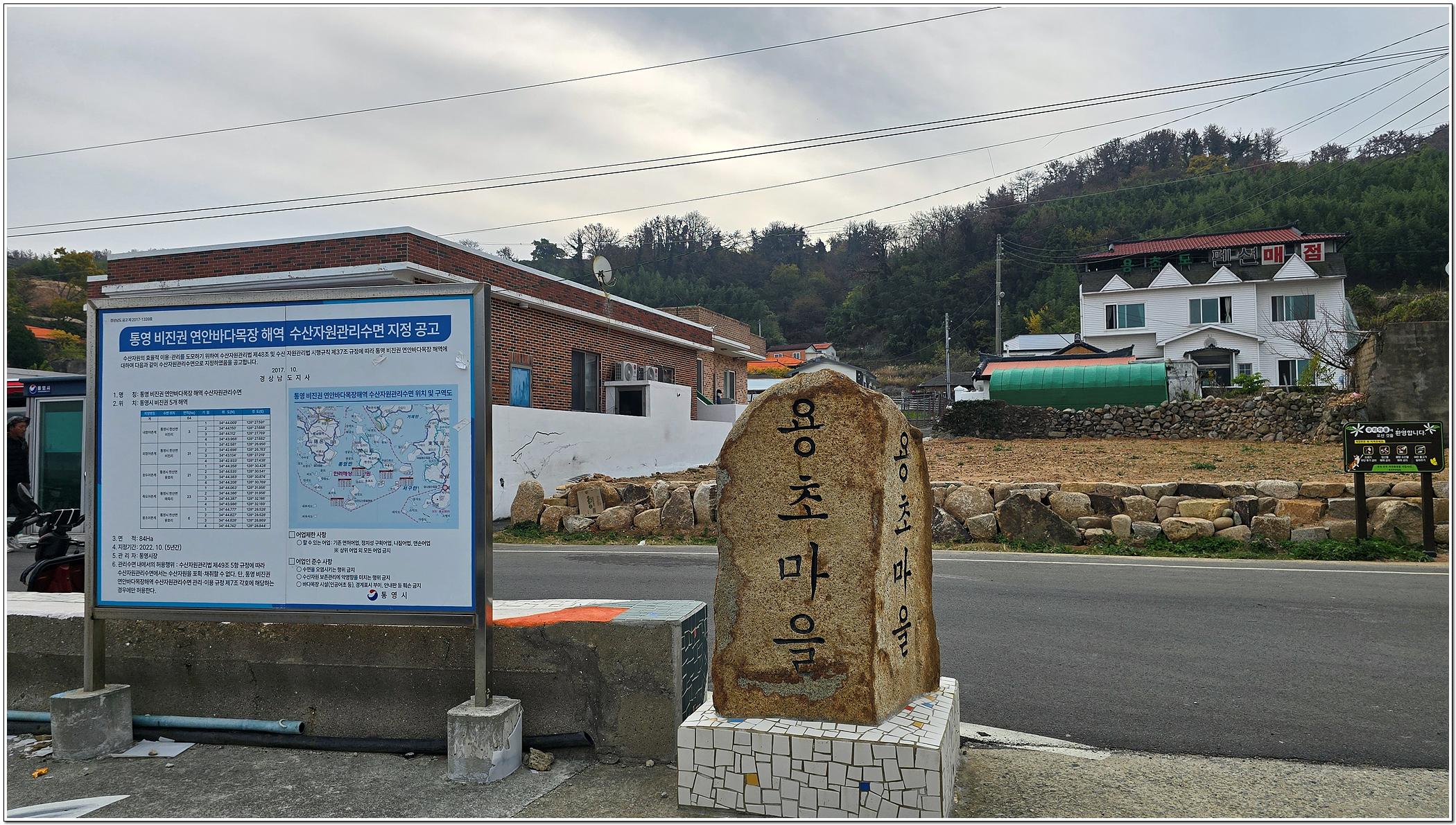 통영시에서 14km, 면 소재인 한산도와는 3km 떨어져 있으며 용초마을 최고봉은 수동산(191.9m)이다.