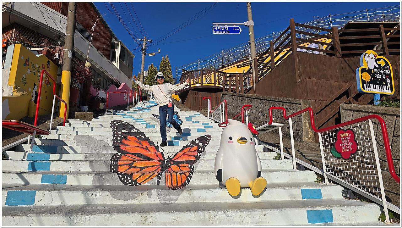 99계단과 음악정원, 피아노계단 등 숨은 보물길을 만나게 되고 서포루에 올라서면 강구안, 동피랑, 북포루, 통영시가지를 한눈에 볼 수 있다.
