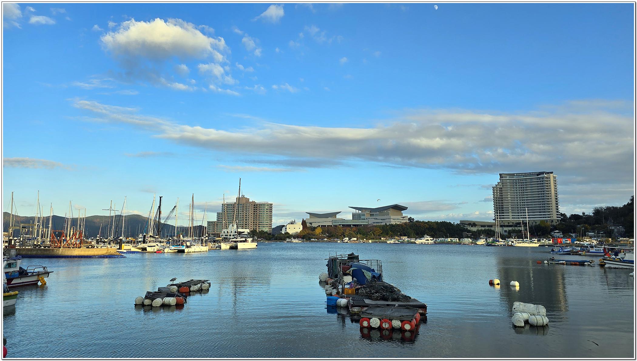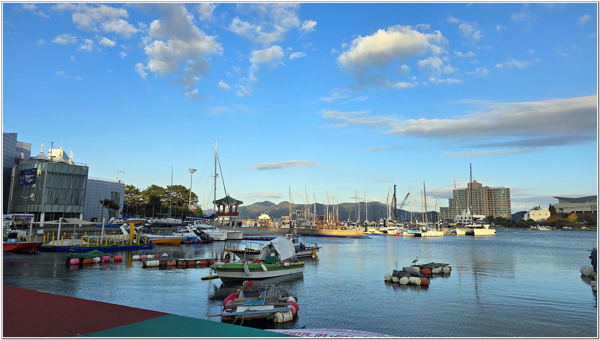 유람선터미널과 마리나리조트, 전통공예관, 휴게광장을 비롯하여 수상스포츠를 즐길 수 있는 시설이 있으며, 바다 뷰가 정말 멋진 곳이다.
