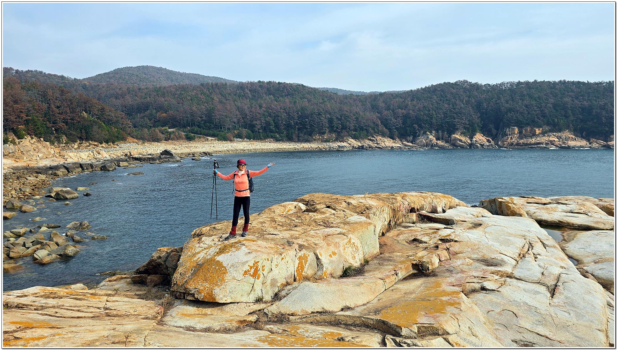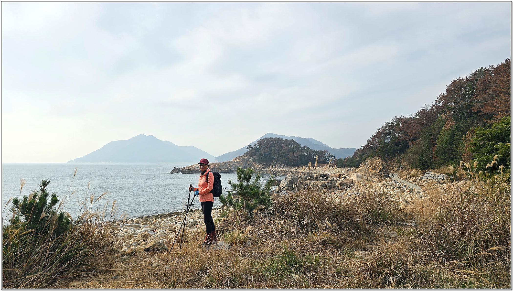 용초항(11:10)~포로수용소 급수탑(11:25)~용머리해안(11:50~12:50)~포로수용소 기게양대(13:15)~수동산(13:30~40)~대나무숲(13:55)~호두항 전망대(14:10)~마을회관(14:15)~호두산(14:45~50)~전망대 갈림길(14:50)~물탱크(15:10)~호두항(16:05)