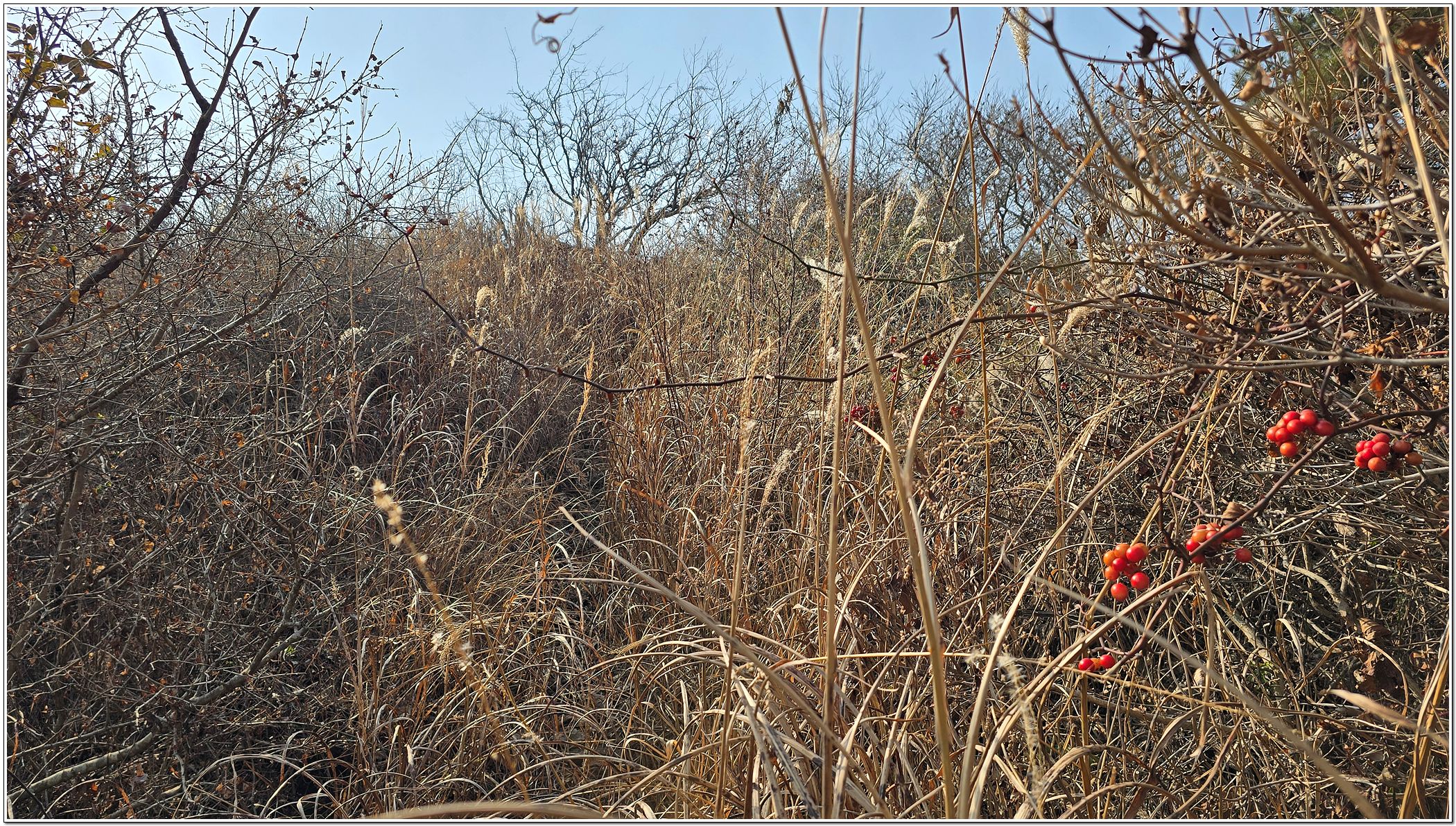 망봉에서 아름다운 조망을 보고 우측 신선골약수터 이정표를 따라 억새숲으로 들어서면 능선이 이어진다.