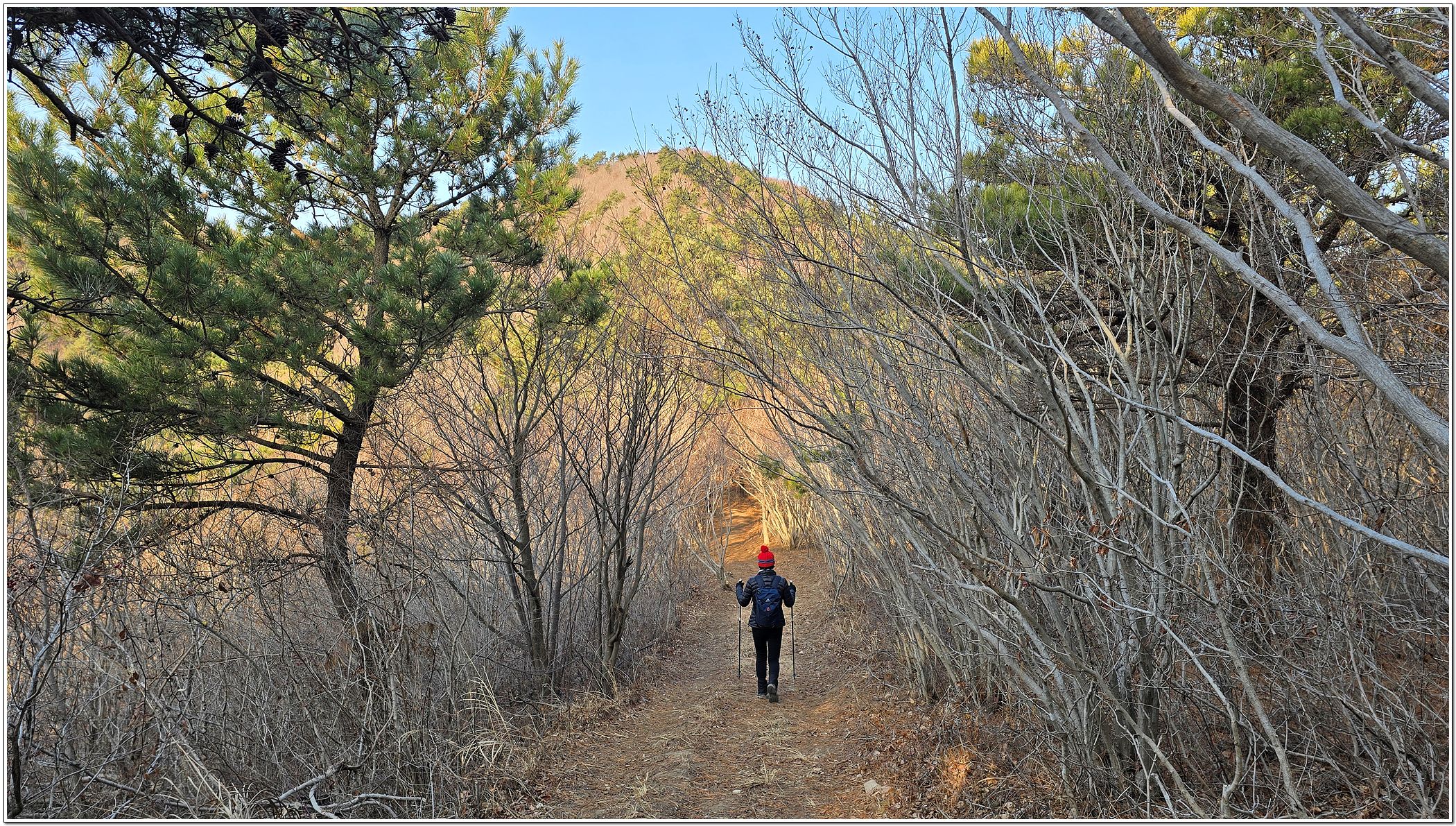 가사봉까지는 1km인데 50m 가량 오르니 길이 묵어 능선봉에서 다시 되돌아나와 갈림길로 내려선다.