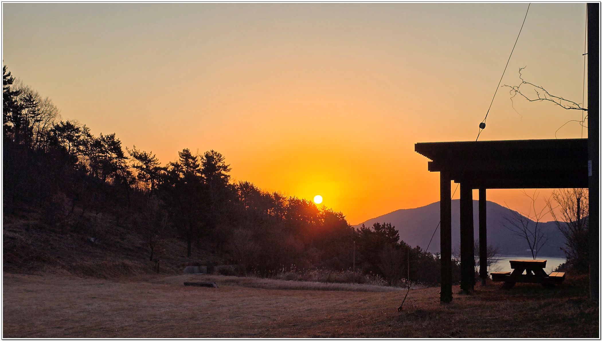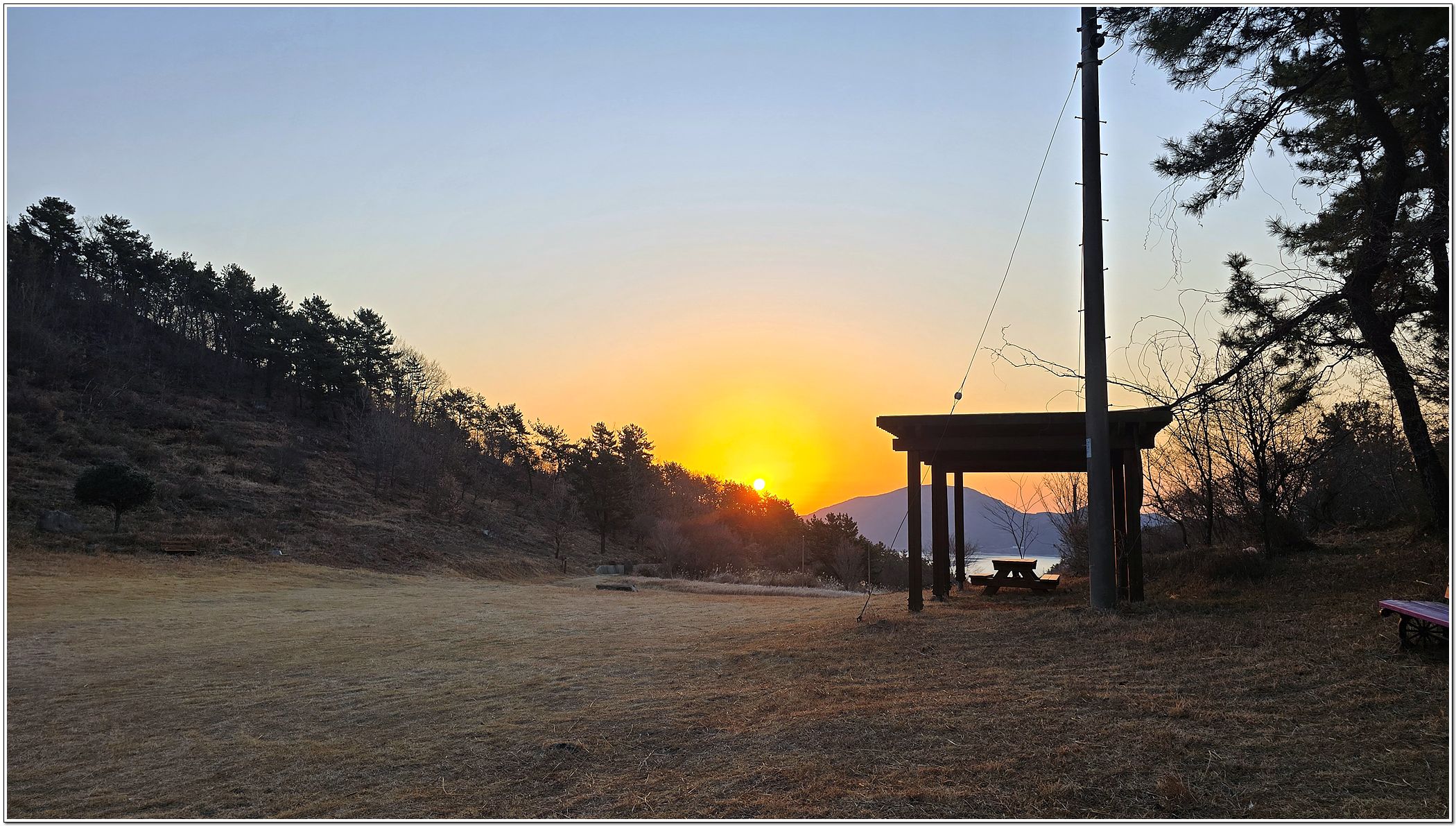 진달래공원에서 하룻밤을 보내고 아침을 맞는다.